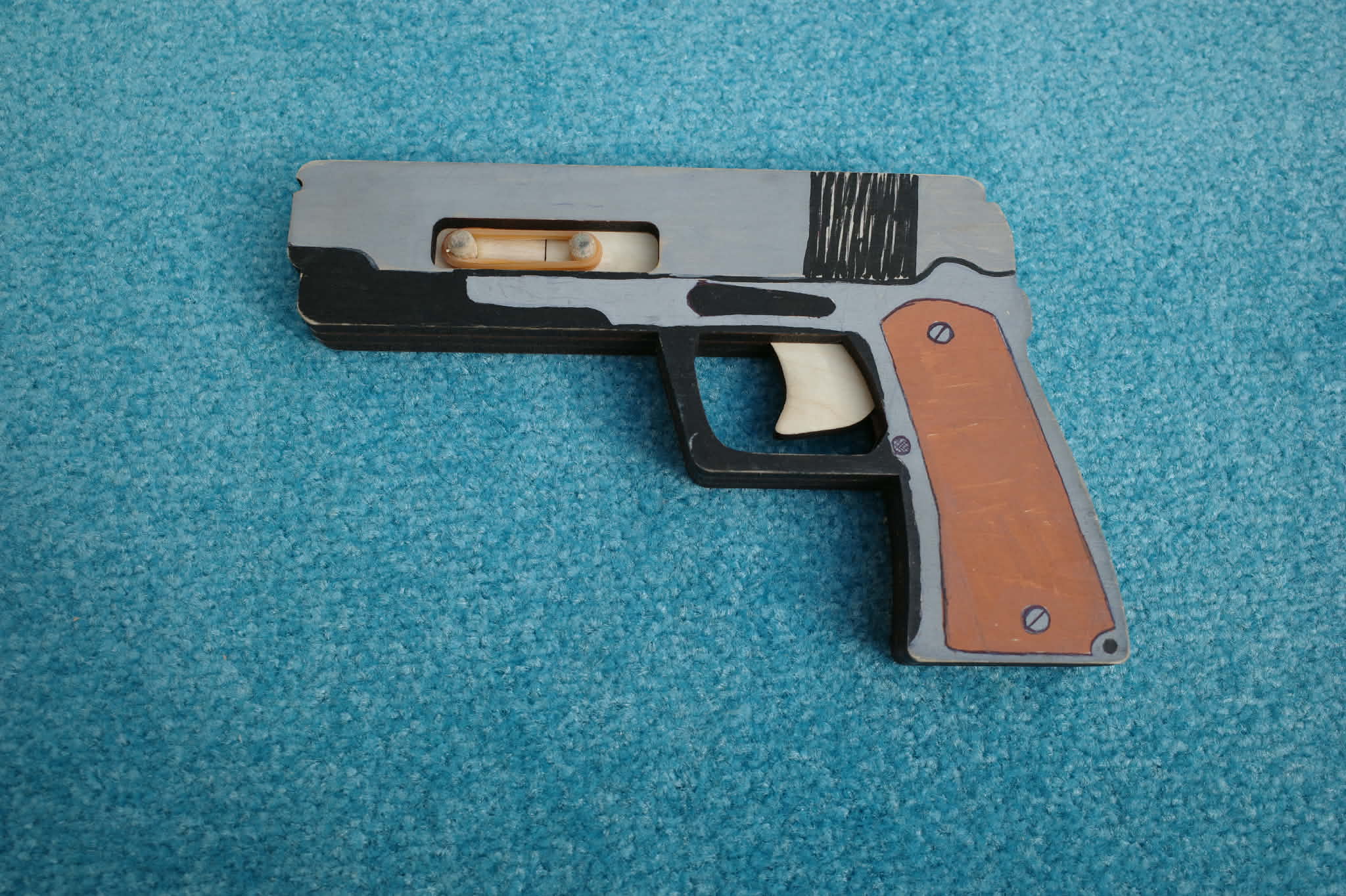 4つのパーツを組み合わせ木のピンとボンドで固定して完成ととても簡単に作れます。