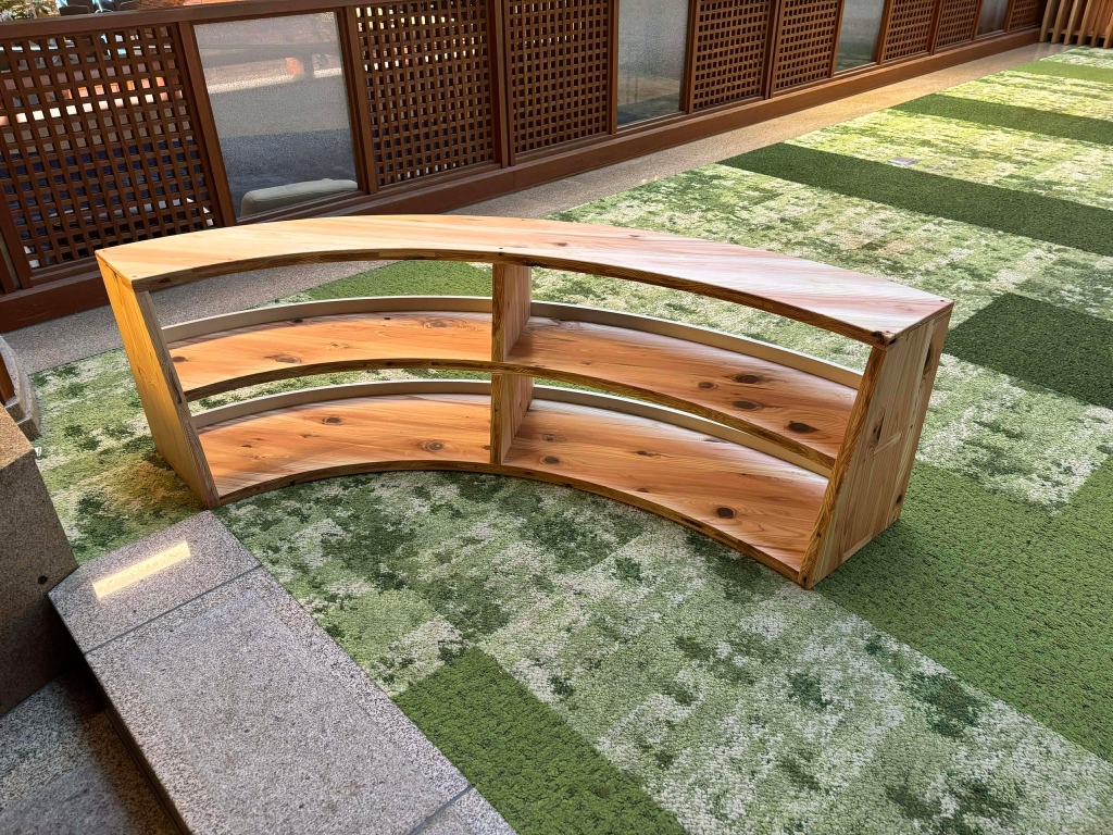 製作させていただいたのは、テーブルとイス・靴置き場・馬面電車の3つとなります。